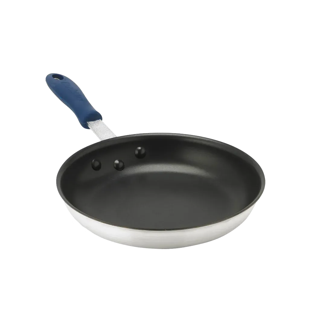 Set the standard with top-tier tools with Browne Foodservice's Cookware - THERMALLOY Aluminum. Model number 5814828 is a must-have for any commercial restaurant. This 8" Aluminum HD Fry Pan Eclipse Non-stick w/Sleeve NSF is designed to deliver exceptional performance and durability. The non-stick coating ensures easy food release and quick cleanup, saving valuable time in a busy kitchen. Its thermal conductivity allows for even heat distribution, preventing hot spots and ensuring consistent cooking results. With a sturdy construction, this fry pan can withstand the demands of a commercial kitchen, making it perfect for high-volume cooking. The sleeve provides added protection during storage and transportation. Browne Foodservice, a trusted name in the industry, offers this cookware to help you achieve culinary excellence. Elevate your restaurant's cooking game with Browne Foodservice's Cookware - THERMALLOY Aluminum.