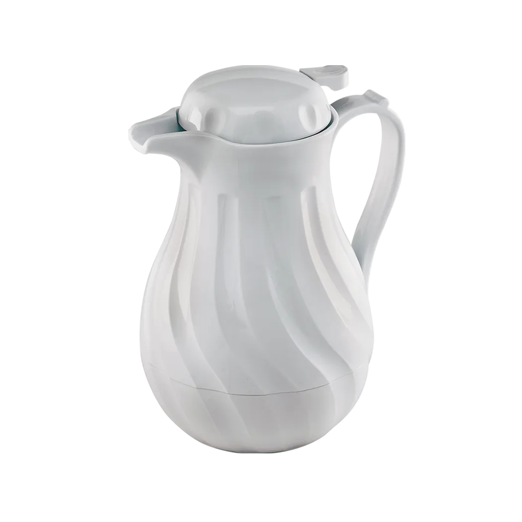 Invest in the future with cutting-edge tools like the Browne Foodservice, 744220, Beverage - Plastic Beverage. Designed for commercial restaurant use, this beverage server is a must-have for any establishment looking to elevate their drink service. With a capacity of 20oz, it allows for easy and efficient serving of beverages to customers. The white swirl design adds a touch of elegance to any table setting, while the push-button mechanism ensures smooth and controlled pouring. Made from durable plastic, this server is built to withstand the demands of a busy restaurant environment. Whether you're serving hot or cold drinks, this beverage server is up to the task. Upgrade your drink service with the Browne Foodservice, 744220, Beverage - Plastic Beverage and impress your customers with every pour.