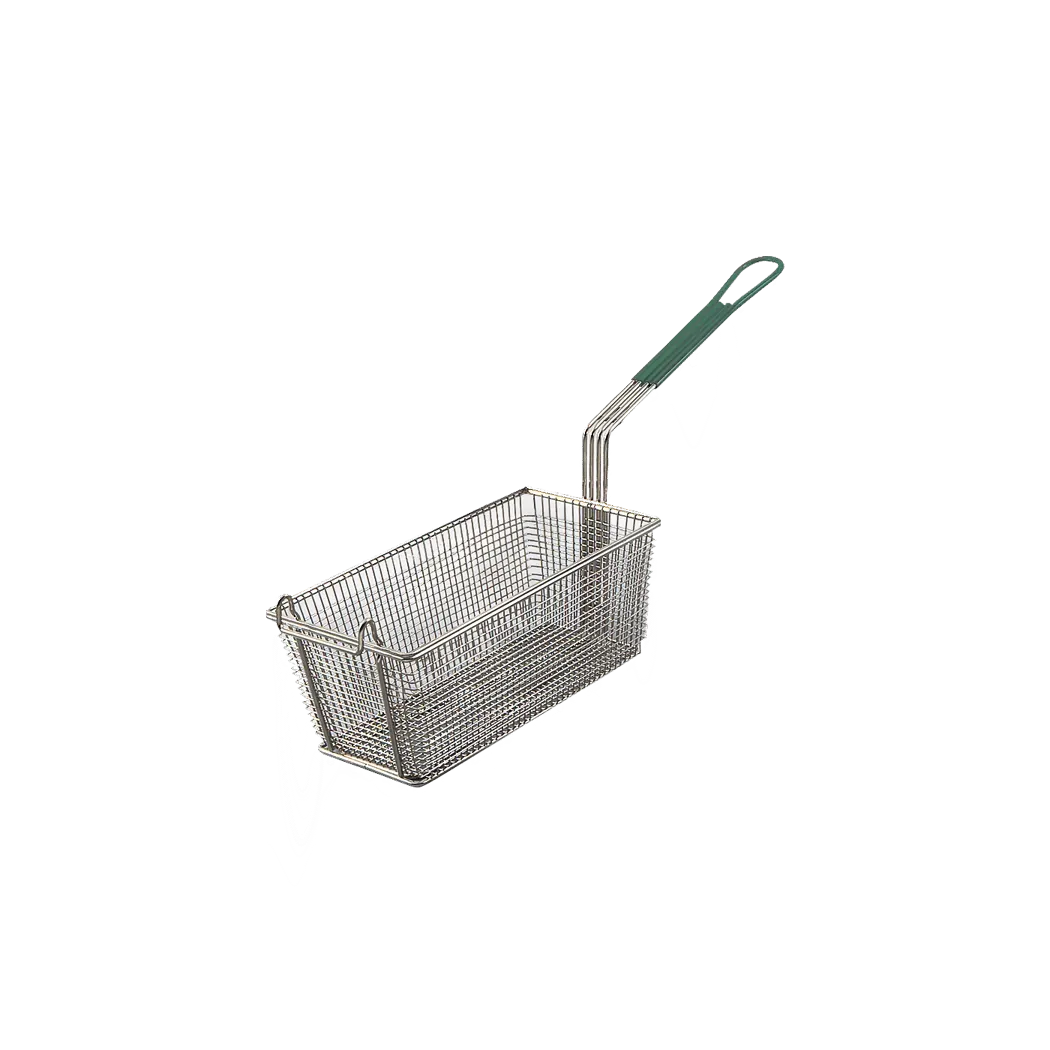 Bring efficiency to kitchen tasks with Browne Foodservice's 79204 Kitchen Utensils - Fry & Culinary Baskets. Designed for commercial restaurant use, this rectangular fryer basket is a must-have tool for any professional kitchen. The basket measures 13x5.5" and features a green coated handle for easy identification and safe handling. With its durable construction and convenient size, this fryer basket is perfect for frying a variety of foods, from crispy french fries to golden chicken tenders. The green coated handle not only adds a pop of color to your kitchen but also ensures a comfortable grip, reducing the risk of accidents. Whether you're running a busy fast-food joint or a high-end restaurant, this Browne Foodservice fryer basket will streamline your frying process and help you deliver delicious, perfectly cooked dishes to your customers.