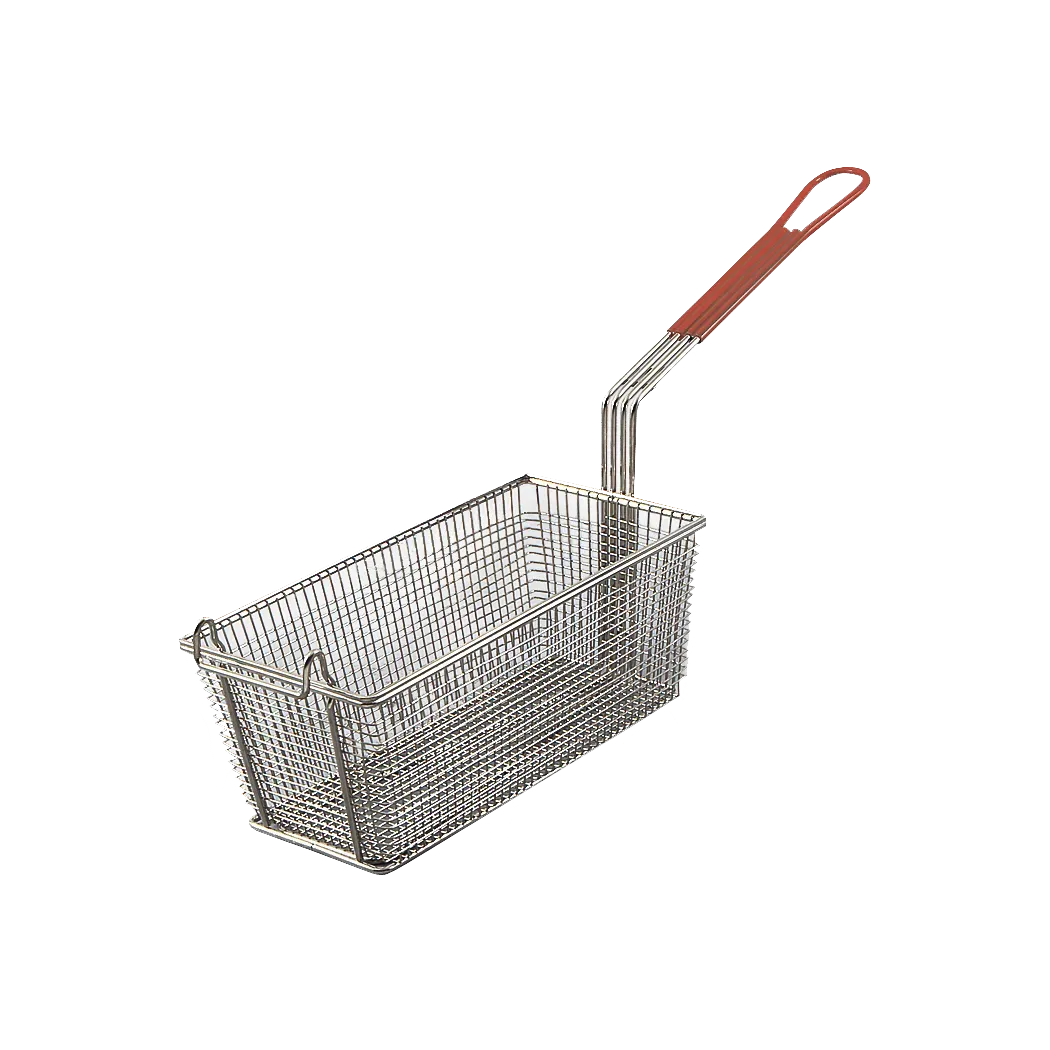 Stay ahead with competitive tools with Browne Foodservice's 79216 Kitchen Utensils - Fry & Culinary Baskets. Designed for commercial restaurant use, this rectangular fryer basket is a must-have for any professional kitchen. With a generous size of 12.5x6.25 inches (31.75x15.875 cm), it provides ample space for frying large quantities of food at once, increasing efficiency and productivity. The red handle adds a pop of color and ensures a secure grip, preventing accidents and promoting safety in a fast-paced environment. Made by Browne Foodservice, a trusted name in the industry, this fryer basket is built to withstand the demands of a busy kitchen, offering durability and longevity. Whether you're frying crispy french fries, golden chicken tenders, or delicious tempura, this fryer basket will deliver consistent results every time. Upgrade your restaurant's frying capabilities with Browne Foodservice's 79216 Kitchen Utensils - Fry & Culinary Baskets.