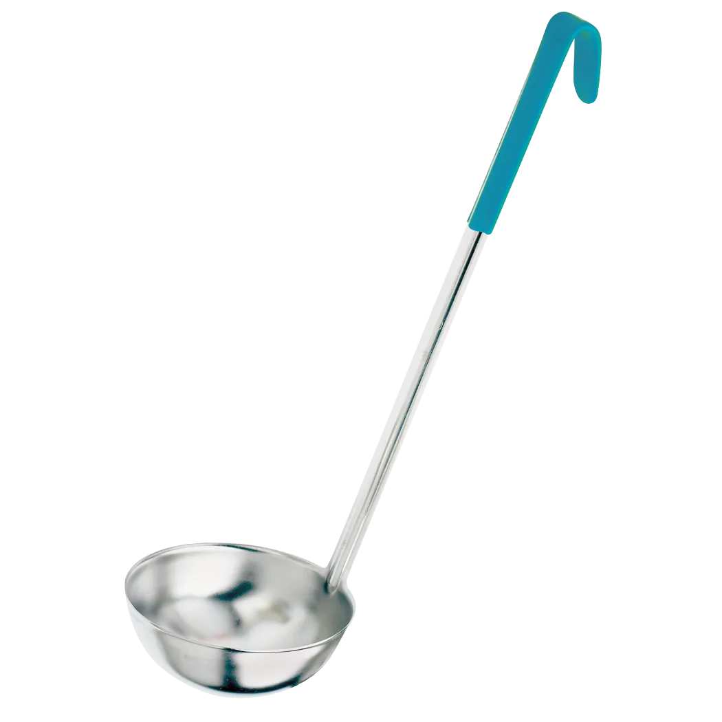Introducing the Browne Foodservice 9946TL Kitchen Utensils - Ladles & Portioners, designed to modernize your restaurant's performance. This 6oz ladle with a teal coated handle is a must-have tool for any commercial kitchen. With its sleek design and durable construction, this ladle is built to withstand the demands of a busy restaurant environment. The teal coated handle not only adds a pop of color to your kitchen but also provides a comfortable grip, ensuring precise and controlled pouring. Whether you're serving soups, sauces, or gravies, this ladle delivers the perfect portion every time. Upgrade your restaurant's utensil collection with the Browne Foodservice 9946TL ladle and experience enhanced performance like never before.