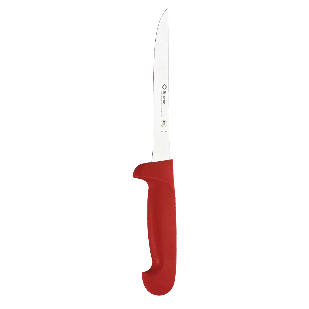 Create a seamless kitchen experience with Browne Foodservice PC1286RD, a high-quality boning knife designed specifically for commercial restaurant use. This knife, with its red handle, is a must-have in any professional kitchen. Crafted by Browne Foodservice, a trusted vendor in the industry, this knife is built to last and deliver exceptional performance. With its sharp blade and ergonomic handle, it allows chefs to effortlessly trim and debone meat, ensuring precision and efficiency. Its compact size and lightweight design make it easy to handle and maneuver, even during long hours of use. Whether you're a professional chef or a restaurant owner, Browne Foodservice PC1286RD is the perfect addition to your kitchen utensils collection, enhancing your culinary skills and creating a seamless cooking experience.