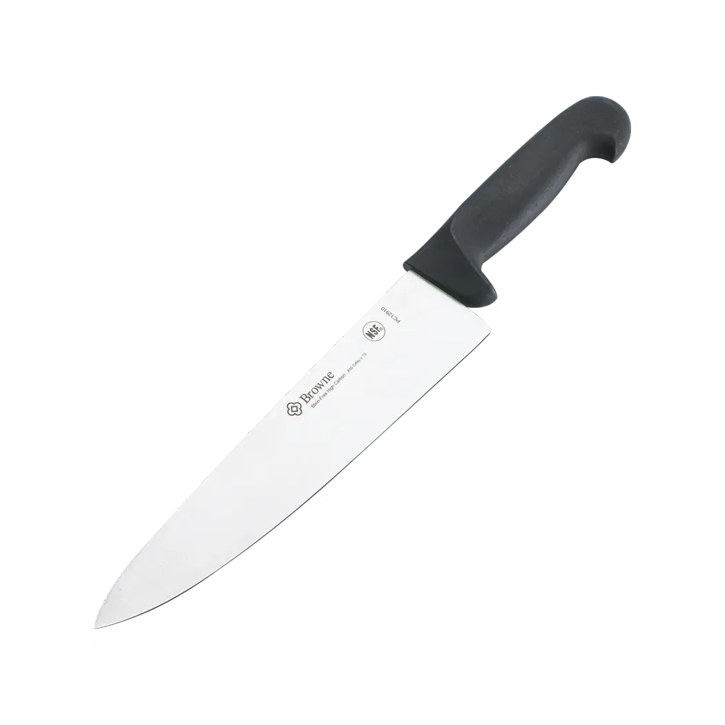 Equip for success with essential tools like the Browne Foodservice PC12910 Kitchen Utensils - Knives. This 10" Cooks Knife with a black handle is a must-have for any commercial restaurant. Designed by Browne Foodservice, a trusted vendor in the industry, this knife is built to withstand the demands of a busy kitchen. With its sharp blade and comfortable handle, it allows chefs to slice, dice, and chop with precision and ease. The knife is packed individually by Browne Foodservice, ensuring its quality and authenticity. Whether you're preparing ingredients for a signature dish or slicing through thick cuts of meat, this knife will be your go-to tool. Its durable construction and ergonomic design make it perfect for professional use. Upgrade your kitchen arsenal with the Browne Foodservice PC12910 Kitchen Utensils - Knives and experience the difference it makes in your culinary creations.