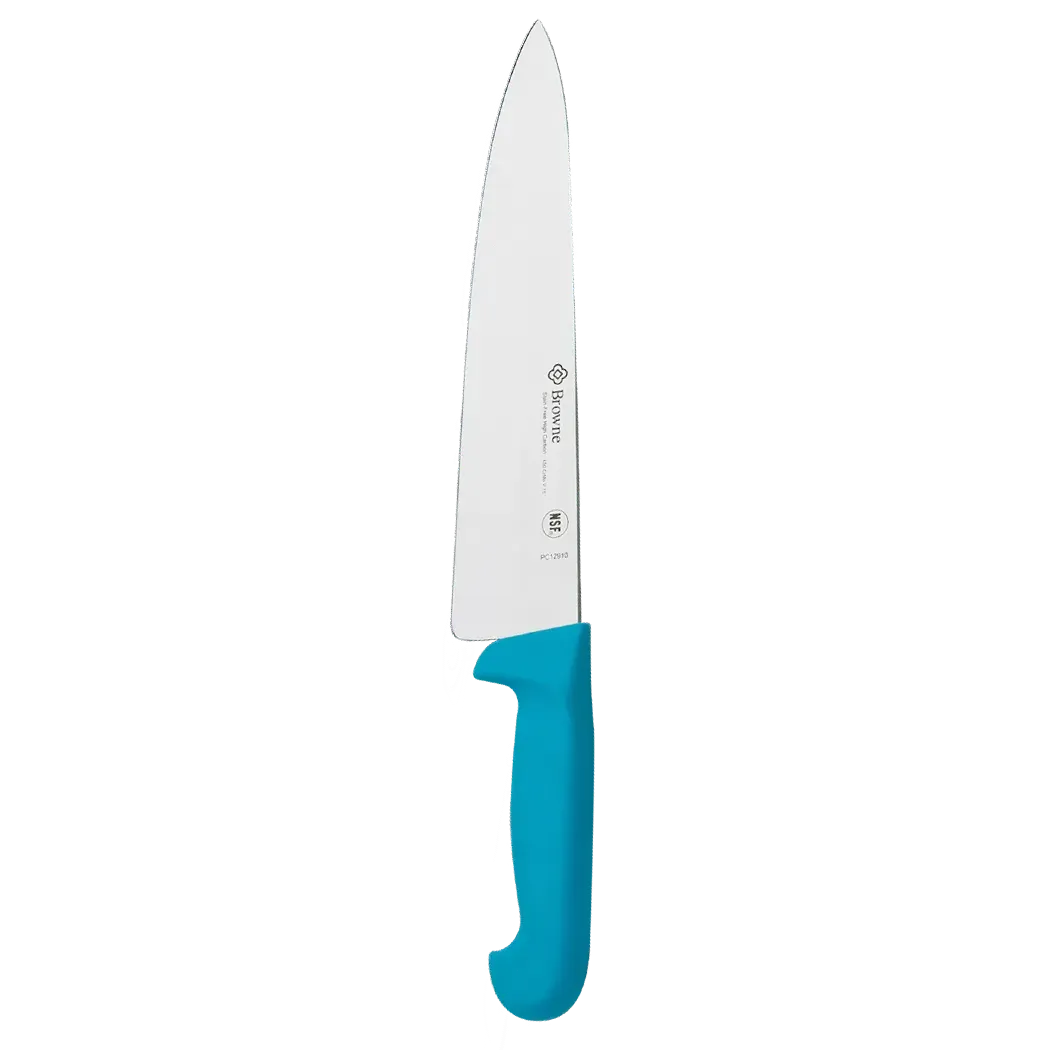 Upgrade your commercial kitchen with the Browne Foodservice PC12910BL Cooks Knife. This 10" knife is a must-have for any professional chef or restaurant owner. With its blue handle, it adds a pop of color to your kitchen while providing exceptional performance. The knife is designed to handle all your cutting needs, from slicing and dicing to chopping and mincing. Its high-quality construction ensures durability and longevity, even in the busiest of kitchens. Whether you're a fine dining establishment or a bustling cafe, this knife is the perfect addition to your kitchen arsenal. Upgrade today and experience the difference in your culinary creations.