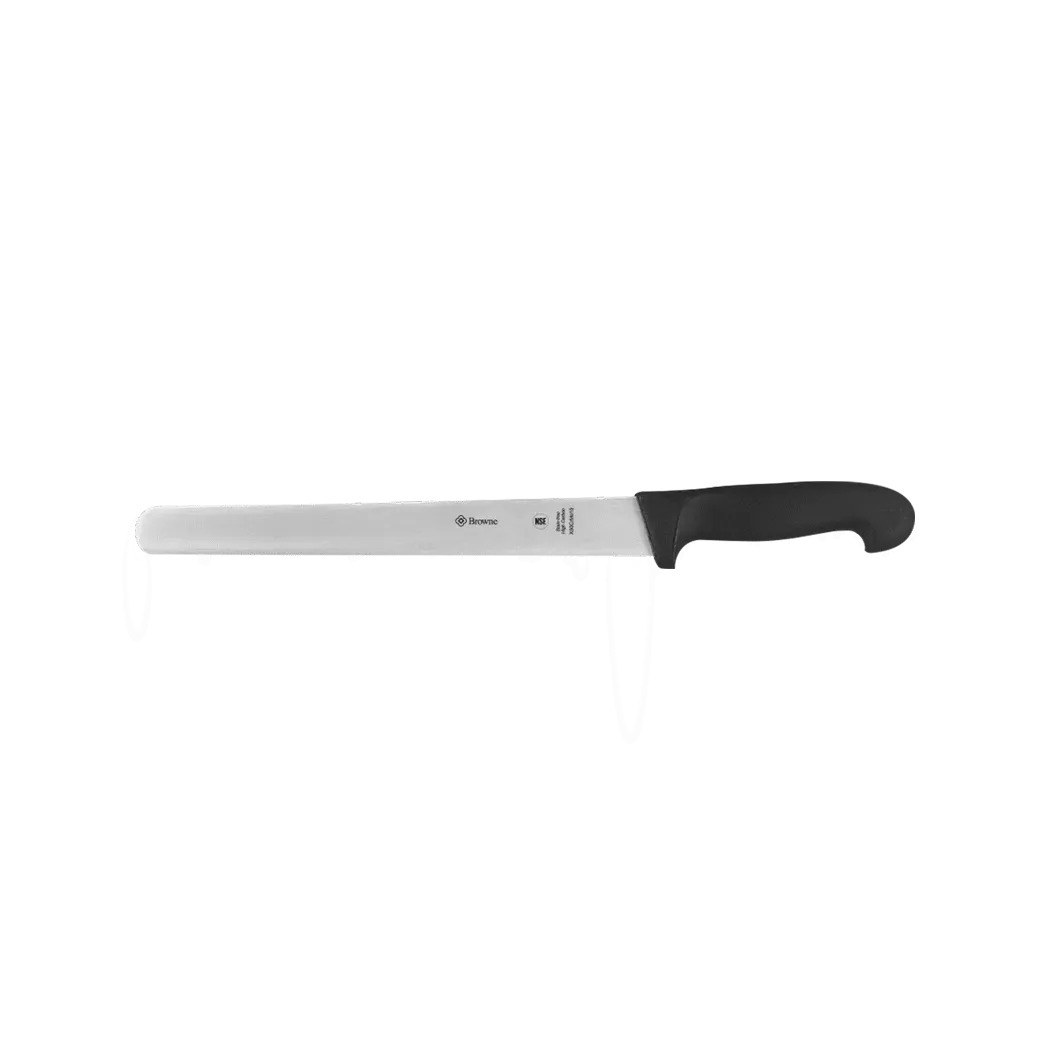 Elevate your restaurant's offerings with the Browne Foodservice PC15510 Kitchen Utensils - Knives. This essential tool is designed to enhance your culinary experience and deliver exceptional results. With its 10" bread knife and black handle, this knife combines functionality and style, making it a must-have in any commercial kitchen. Its innovative design allows for precise and effortless slicing, making it ideal for cutting through crusty bread and delicate pastries. Whether you're running a bakery, café, or restaurant, this knife will streamline your food preparation process and impress your customers with perfectly sliced bread every time. Invest in the Browne Foodservice PC15510 and take your culinary creations to the next level.