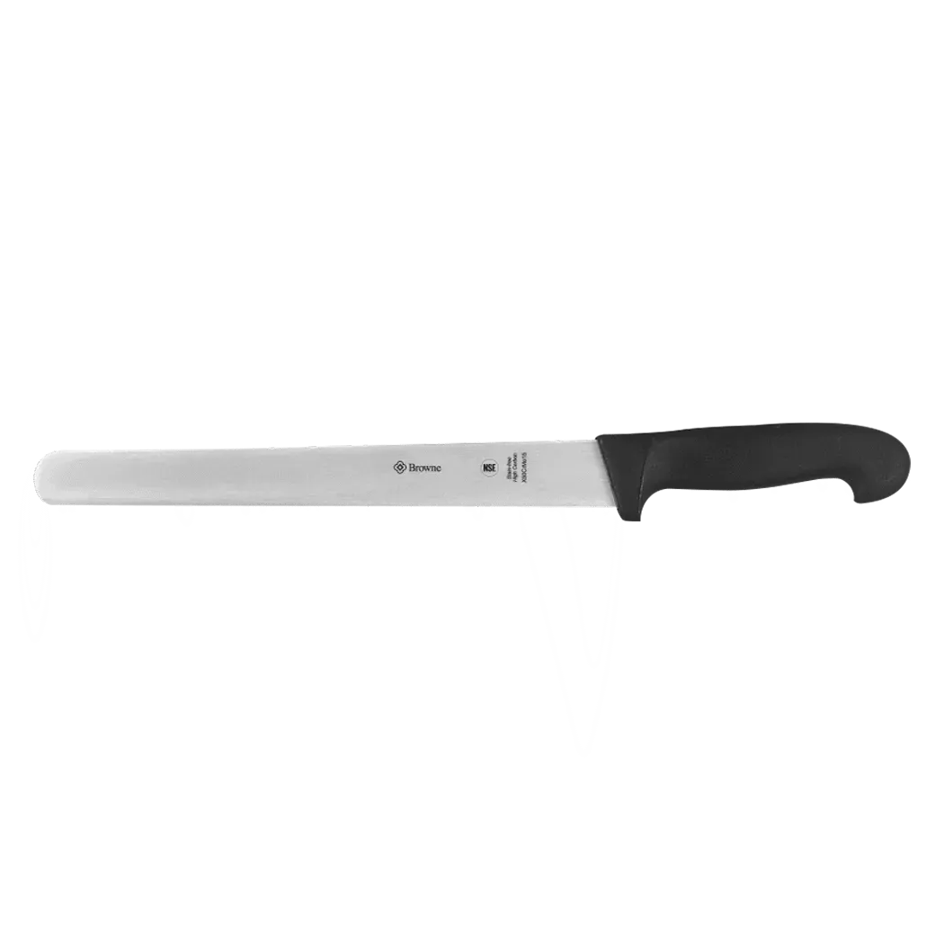 Upgrade your restaurant's capabilities with the Browne Foodservice PC15512 Kitchen Utensils - Knives. This high-quality bread knife is a must-have tool for any commercial kitchen. With its 12-inch blade and black handle, it offers both style and functionality. The sharp blade effortlessly slices through bread, ensuring clean and precise cuts every time. Whether you're serving sandwiches, toast, or artisan bread, this knife will make the task quick and easy. Designed for professional use, it is built to withstand the demands of a busy restaurant environment. Upgrade your kitchen with this essential knife and experience the difference it makes in your restaurant's efficiency and presentation.