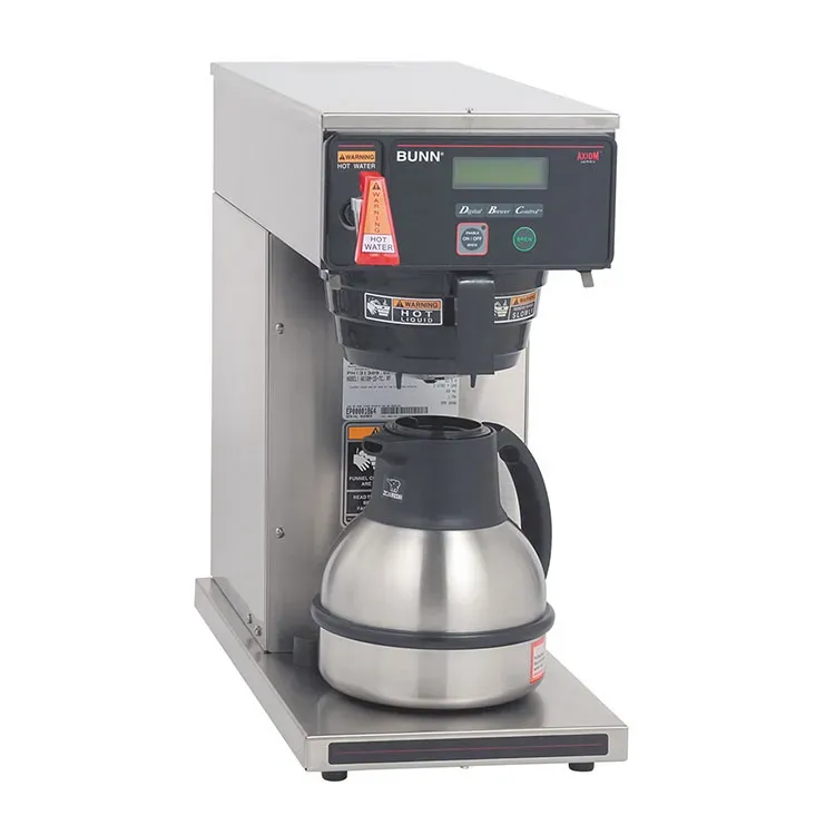 Introducing the Bunn 38700.0011 Coffee Brewer for Thermal Server, designed to modernize your restaurant's efficiency and excellence. This automatic coffee brewer is perfect for commercial restaurant use, offering a dual-voltage adaptable feature that allows it to operate at 120v (15amp) or 120/208v-240v (20amp). With a generous 200 oz. capacity tank and a hot water faucet, serving your customers has never been easier. The LCD display, electronic diagnostics, and digital temperature control ensure precise brewing, while the pre-infusion and pulse brew features guarantee optimal coffee extraction. The built-in tank drain and energy-saver mode add convenience and cost savings. This coffee brewer also accepts thermal carafes up to 8-1/2" tall (thermal carafe sold separately), making it versatile for any serving size. NSF and UL certified, the Bunn 38700.0011 is a reliable and high-quality addition to your restaurant's coffee service.