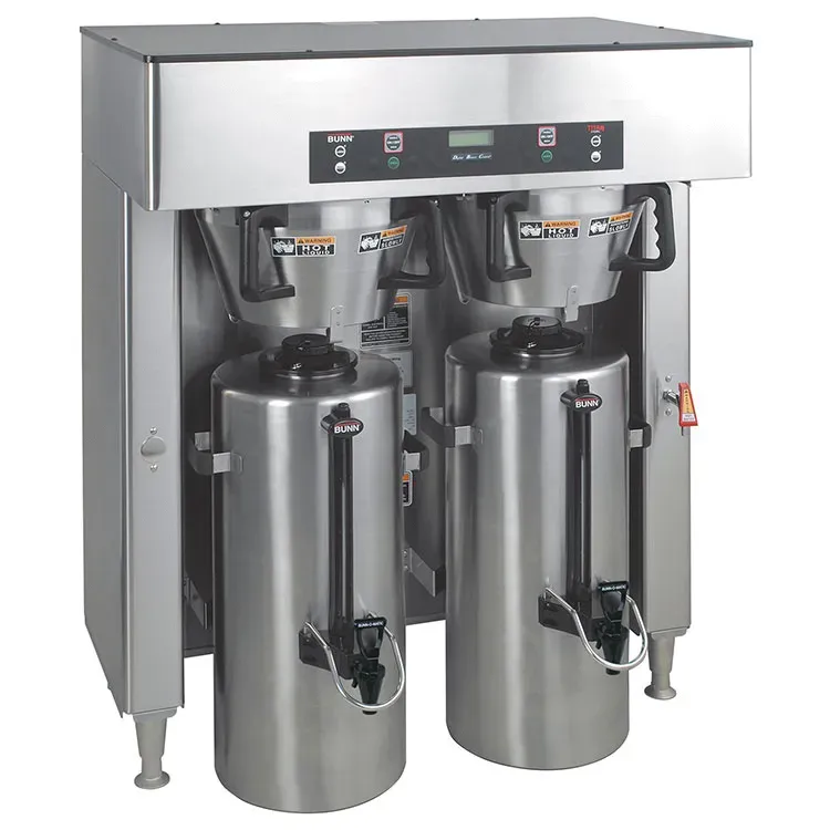 Upgrade your restaurant's coffee capabilities with the Bunn 39200.0000 Coffee Brewer for Satellites. This high-quality brewer is designed specifically for commercial restaurant use, delivering exceptional performance and reliability. With a brewing capacity of 34.3 gallons per hour, this dual brewer ensures a steady supply of delicious coffee for your customers. The coffee extraction is controlled with pre-infusion and pulse brew, resulting in a rich and flavorful cup every time. The digital temperature control allows you to adjust the brewing temperature to suit your preferences. The large spray head ensures even saturation of the coffee grounds, maximizing extraction and flavor. The BrewMETER feature allows you to easily monitor the brewing process, while the SplashGard funnel prevents messes and accidents. The brewer also features locks and 28-ounce capacity and paper filter retainers for added convenience. Additionally, it comes with a hot water faucet for making tea or other hot beverages. The stainless steel insulated servers (sold separately) keep the coffee hot and fresh for extended periods. Upgrade your coffee service with the Bunn 39200.0000 Coffee Brewer for Satellites and impress your customers with the perfect cup of coffee every time.