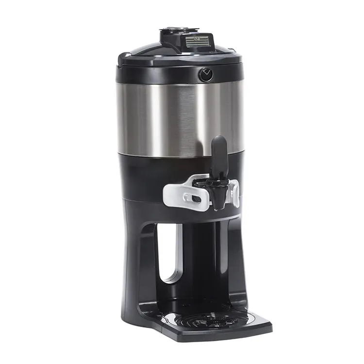 Craft wonders with professional-grade utensils with the Bunn 42700.0200 Thermal Server, Brew-Thru. This top-of-the-line server is designed to meet the demands of a commercial restaurant setting, ensuring that your beverages stay hot and fresh for longer periods. The server features a 1-gallon capacity, perfect for serving large quantities of coffee or tea to your customers. The lever action dispensing and fast flow faucet allow for easy and efficient pouring, while the battery-operated volume indicator display and 4-hour digital count-up timer ensure precise measurements and timing. The server is also equipped with a brew-through lid, portable soft-grip bail handle, and aluminum faucet guard for added convenience and durability. With its vacuum insulated stainless steel liner and black finish, this server is not only functional but also visually appealing. Compatible with both twin and single Infusion Series brewers, this NSF-certified server is a must-have for any commercial restaurant looking to elevate their beverage service.