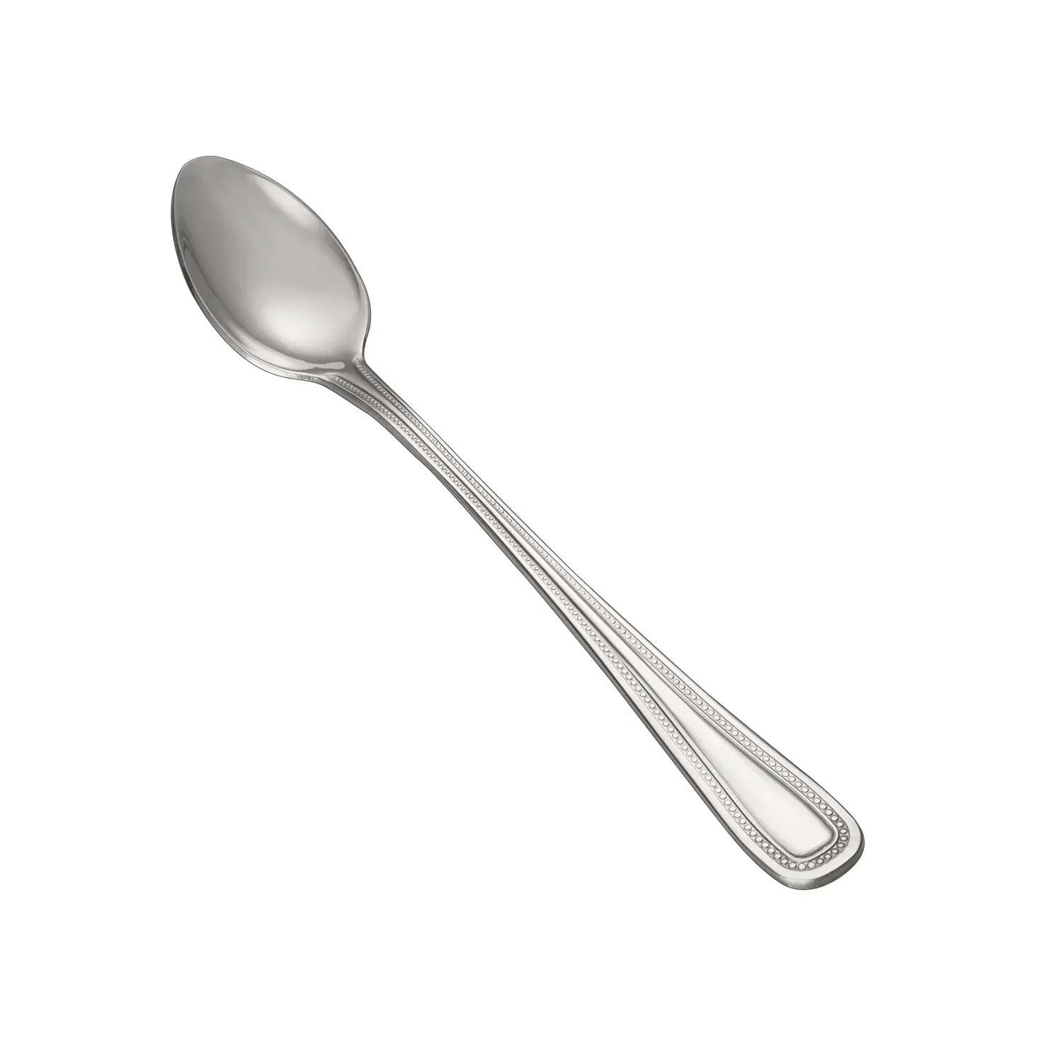 Elevate your dining experience with the exquisite Black Pearl Iced Tea Spoon, a must-have for any sophisticated table setting. Crafted with precision and elegance, this spoon features an impressive 18/0 heavy-weight stainless steel construction, ensuring both durability and a timeless shine that resists rust and corrosion. Measuring a perfect 7 1/8 inches, it offers an optimal length for stirring and savoring your favorite iced beverages, blending functionality with style. The Black Pearl design adds a touch of opulence and refinement, making it an ideal choice for formal events or everyday use. Its sleek, polished finish complements any tableware collection, while the ergonomic handle ensures a comfortable grip for effortless stirring. Whether you're hosting an elegant tea party or enjoying a leisurely afternoon iced tea, this spoon promises to enhance the experience with its sophisticated allure. Designed for those who appreciate fine craftsmanship and aesthetic appeal, the Black Pearl Iced Tea Spoon is more than just an accessory—it's a statement of taste and elegance. Add this stunning piece to your flatware collection and impress your guests with the perfect blend of functionality and luxury.