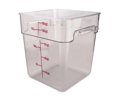 Stay competitive with versatile solutions. Introducing the Cambro 18SFSCW135 Food/Beverage Storage Container, a must-have for any commercial restaurant. With a generous 18-quart capacity, it provides ample space to store and organize your ingredients, keeping them fresh and easily accessible. The Camwear Square design allows for easy stacking, maximizing your storage space. Made from durable, clear material, this container is built to withstand the demands of a commercial kitchen, while also allowing for quick identification of contents. Whether you need to store prepped ingredients, leftovers, or bulk supplies, this food/beverage storage container is a reliable and efficient solution. Invest in the Cambro 18SFSCW135 and streamline your restaurant operations today.