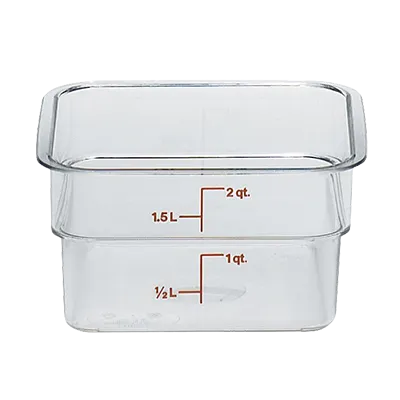 Stay ahead in the culinary landscape with Cambro's 2SFSCW135 Food/Beverage Storage Container. Designed for commercial restaurant use, this container is a must-have for any professional kitchen. With a capacity of 2 quarts, it provides ample space to store and organize food and beverages. The clear Camwear square design allows for easy visibility, making it simple to identify contents at a glance. Made by Cambro, a trusted name in food and beverage storage, this container is built to last. Its durable construction ensures it can withstand the demands of a busy kitchen, while the tight-sealing lid keeps contents fresh and secure. Whether you're storing prepped ingredients or leftovers, the Cambro 2SFSCW135 Food/Beverage Storage Container is the perfect solution for commercial restaurant use.