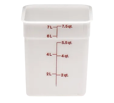 Invest in the future of food service with Cambro's 8SFSP148 Food/Beverage Storage Container. Designed for commercial restaurant use, this square 8-quart container is a must-have for any professional kitchen. With a durable poly white construction, it ensures long-lasting performance and easy cleaning. The square shape allows for efficient use of space in your refrigerator or pantry, maximizing storage capacity. The tight-fitting lid keeps your food fresh and prevents cross-contamination, while the stackable design saves valuable space in your storage area. Whether you're storing dry goods, liquids, or prepared dishes, this Cambro container is the perfect solution. Invest in quality and efficiency with Cambro's 8SFSP148 Food/Beverage Storage Container and elevate your restaurant's food storage capabilities.