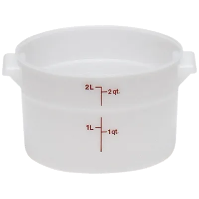 Equip your restaurant for success with the Cambro RFS2148 Food/Beverage Storage Container. Designed specifically for commercial restaurant use, this container is a must-have for any food establishment. With a capacity of 2 quarts, it provides ample space to store and organize your ingredients, ensuring freshness and reducing waste. The round shape allows for easy stacking and efficient use of space in your kitchen. Made of durable poly material, this container is built to withstand the demands of a busy restaurant environment. It is also easy to clean and maintain, saving you time and effort. Trust Cambro, a reputable vendor in the food and beverage industry, to deliver quality and reliability. Upgrade your restaurant's storage capabilities with the Cambro RFS2148 Food/Beverage Storage Container.
