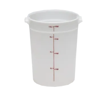 Transform kitchen service with solutions like the Cambro RFS8148 Food/Beverage Storage Container. Designed for commercial restaurant use, this round 8-quart container is a game-changer in food and beverage storage. With a durable poly white construction, it ensures long-lasting performance in busy kitchen environments. This storage container is perfect for storing ingredients, prepped food, or even beverages, keeping them fresh and organized. Its commercial-grade quality ensures that it can withstand the demands of a busy restaurant kitchen, while its round shape allows for easy stacking and storage. Upgrade your kitchen storage with the Cambro RFS8148 Food/Beverage Storage Container and experience the convenience and efficiency it brings to your restaurant operations.