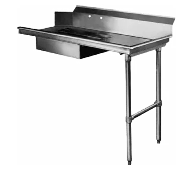 Cook with confidence and flair with the CMA Dishmachines, SR-60 Dishtable. This soiled dishtable is designed to meet the demands of a busy commercial restaurant kitchen. With its straight design and dimensions of 60"W x 29"D x 42-3/4"H, it provides ample space for your dishwashing needs. The 16/304 stainless steel top and 8"H backsplash ensure durability and easy cleaning. The dishtable features a 20" x 20" x 5" deep pre-rinse sink with an 8" OC splash mount faucet holes, allowing for efficient pre-rinsing of dishes. The raised rolled edges on the front and side prevent spills and splashes, keeping your kitchen clean and safe. The stainless steel legs and adjustable side bracing provide stability and support. NSF certified, this dishtable is a reliable and essential addition to any commercial restaurant kitchen.