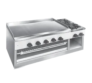 Elevate kitchen efficiency with top-tier equipment. Introducing the Comstock-Castle 11301B Griddle / Hotplate, Gas, Countertop. This versatile unit is designed to meet the demands of a commercial restaurant setting, offering exceptional performance and durability. The 30" wide x 16" deep polished steel griddle plate provides ample space for cooking a variety of dishes, while the overfired cheesemelter below with a pull-out rack adds versatility to your menu options. With manual controls and two 12000 BTU open burners, you have precise control over the cooking process. The stainless steel exterior ensures easy cleaning and long-lasting durability. With a powerful 747474747474747474000 BTU output, this griddle / hotplate is ready to handle high-volume cooking. Whether you're grilling, melting cheese, or using the burners for additional cooking tasks, this Comstock-Castle unit is a reliable and efficient addition to any commercial kitchen.