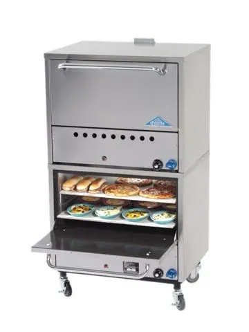 Elevate your pizza-making experience with our state-of-the-art gas-powered Pizza Bake Oven, expertly designed for culinary perfection. This deck-type oven features a robust double-stacked design on a sturdy leg frame, complete with a venting chimney for optimal performance. Each cavity is equipped with two spacious 31-1/2" x 21" hearth decks, offering a total of four decks and six versatile deck positions, providing you with ample space to craft your pizza masterpieces. Engineered for precision, the oven boasts a powerful 650-degree thermostat with a safety shut-off feature, ensuring both safety and superior baking results. The interior is lined with durable porcelain and aluminized materials, while the sleek stainless steel exterior exudes a professional aesthetic, perfect for any kitchen environment. Supported by 6" legs and an angle-iron frame, the stacked ovens are as stable as they are efficient, delivering a formidable total of 60000 BTU across the two sections. Certified by NSF and cETLus, this pizza oven not only meets rigorous safety standards but also promises reliability and exceptional performance, making it an indispensable tool for pizza artisans who demand nothing but the best in their culinary endeavors.