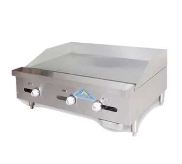 Create culinary wonders with precision equipment. Introducing the Comstock-Castle 3236TG Gas Countertop Griddle, a must-have for any commercial restaurant. This griddle is designed to deliver exceptional performance and durability, making it perfect for high-volume cooking. The 36" wide x 32" deep frame provides ample cooking space, while the 36" wide x 24" deep x 1" thick polished steel griddle plate ensures even heat distribution for consistent results. With thermostat controls, you can easily adjust the temperature to suit your cooking needs. The 3" splash guard on the back and ends keeps your workspace clean, while the 3-1/2" wide front grease trough and large removable grease drawer make cleaning a breeze. Made with a stainless steel exterior and equipped with 4" adjustable feet, this griddle is built to withstand the demands of a busy kitchen. With a powerful 90000 BTU, this NSF-certified griddle is a reliable and efficient choice for any commercial restaurant. Upgrade your kitchen with the Comstock-Castle 3236TG Gas Countertop Griddle and elevate your culinary creations.
