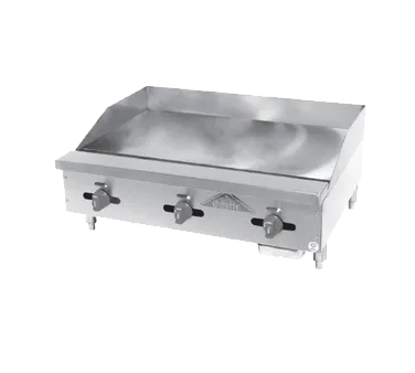 Equip your kitchen for superior culinary experiences with the Comstock-Castle 3872MG Gas Countertop Griddle. This high-quality griddle is designed for commercial restaurant use, offering a spacious 72" wide x 38" deep frame and a 72" wide x 30" deep x 3/4" thick polished steel griddle plate. With six manual controls, you have precise control over the cooking process, ensuring perfect results every time. The griddle also features a 4" splash guard on the back and ends, as well as a 3-1/2" wide front grease trough and a large removable grease drawer for easy cleaning. Made with a stainless steel exterior, this griddle is not only durable but also NSF certified for added peace of mind. With a powerful 180000 BTU, this Comstock-Castle griddle is a reliable and efficient addition to any commercial kitchen.