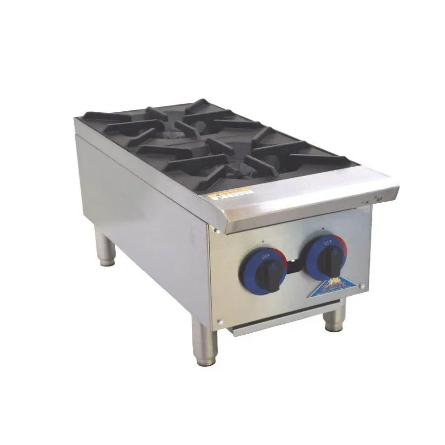 Set the standard with top-tier cooking gear with the Comstock-Castle CCGHP-2 Hotplate. This countertop gas hotplate is designed for commercial restaurant use, delivering exceptional performance and durability. With two 25,000 BTU hex burners and 12" x 12" cast iron grates, this hotplate provides even heat distribution and allows for versatile cooking options. The manual controls give you precise control over the temperature, ensuring perfect results every time. The stainless steel exterior finish not only adds a sleek and professional look to your kitchen but also makes it easy to clean and maintain. The 4" legs provide stability and allow for easy installation on any countertop. With a powerful 50,000 BTU output, this hotplate can handle high-volume cooking, making it ideal for busy commercial kitchens. Trust the Castle Branded Import by Comstock-Castle, a trusted name in the industry. NSF and cETLus certified, this hotplate meets the highest standards of safety and quality. Upgrade your restaurant kitchen with the Comstock-Castle CCGHP-2 Hotplate and experience superior cooking performance.