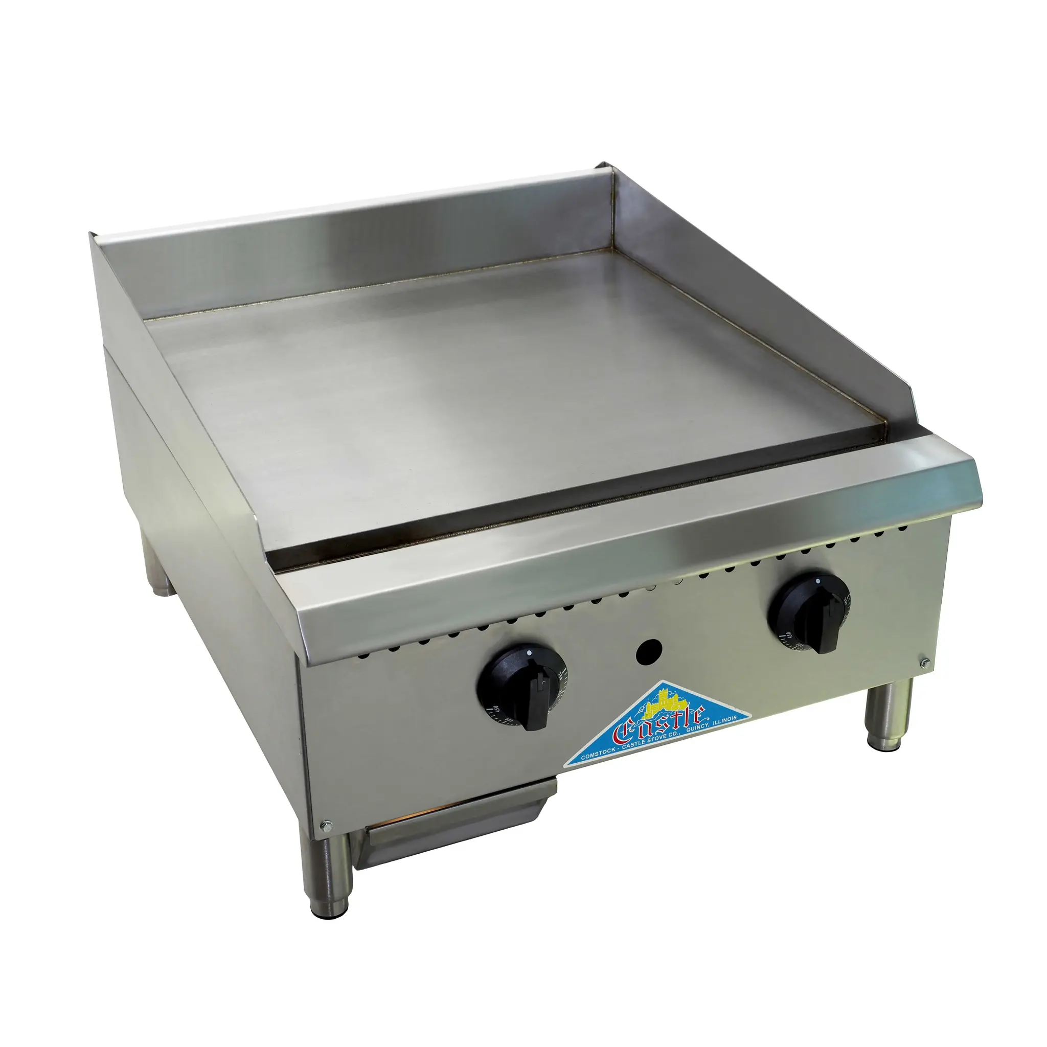 Invest in quality for an unmatched cooking journey with the Comstock-Castle CCHG-24-1 Gas Countertop Griddle. Designed for commercial restaurant use, this griddle is a game-changer in the kitchen. Its 24" x 30" frame provides ample cooking space, while the smooth, highly polished steel griddle plate ensures even heat distribution for perfect results every time. With two manual controls, you have precise control over the temperature, allowing you to cook a variety of dishes simultaneously. The 4" splash guard on the back and ends keeps your workspace clean, while the 3" wide front grease trough and removable grease drawer make cleaning up a breeze. Made with a stainless steel exterior and 4" stainless steel legs, this griddle is built to withstand the demands of a busy restaurant kitchen. With a powerful 60,000 BTU, NSF certification, and ETL-Sanitation approval, the Comstock-Castle CCHG-24-1 Gas Countertop Griddle is the perfect addition to any commercial kitchen.