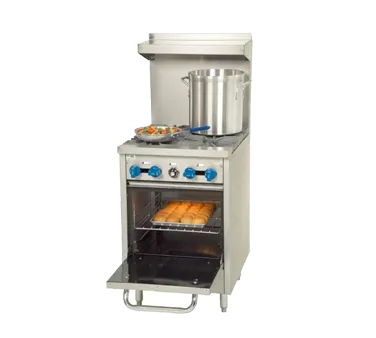 Create culinary wonders with precision equipment. The Comstock-Castle F318 Range is the perfect addition to any commercial restaurant kitchen. With its 24" width, this gas range is compact yet powerful, making it ideal for smaller spaces. It features four 24000 BTU star burners with 12" square cast iron grates, providing even heat distribution and excellent cooking performance. The space-saver oven is equipped with an enamel door and bottom linings, ensuring durability and easy cleaning. It comes with one rack and three positions, allowing for versatile cooking options. The stainless steel exterior, back riser, and high shelf add a sleek and professional look to your kitchen. With 6" stainless steel legs, this range stands at 37" tall to the cook surface, providing a comfortable working height. With a total BTU of 121000, this range delivers exceptional cooking power. NSF and cETLus certified, this Comstock-Castle range guarantees safety and reliability. Elevate your culinary creations with the Comstock-Castle F318 Range.