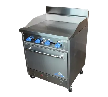 Equip your kitchen for culinary excellence with the Comstock-Castle F326-30 Range. This 30" wide gas range is designed specifically for commercial restaurant use, making it the perfect addition to any professional kitchen. The range features a 3/4" thick griddle with manual controls, allowing for precise temperature control and even cooking. The 26-1/2" wide standard oven is equipped with enamel door and bottom linings, ensuring durability and easy cleaning. With one rack and three positions, you can easily accommodate multiple dishes at once. The stainless steel exterior, back riser, and high shelf not only add a sleek and professional look to your kitchen but also provide additional storage space. The welded frame and 6" stainless steel legs ensure stability and durability. With a cook surface height of 37" and a powerful 102000 BTU, this range is built to handle the demands of a busy commercial kitchen. Trust Comstock-Castle for quality and reliability.