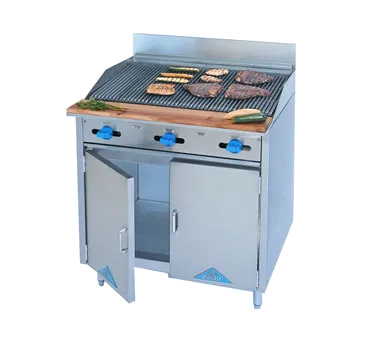 Set the culinary standard with top-tier equipment. Introducing the Comstock-Castle F33-3LB Range, a must-have for any commercial restaurant. This gas range is designed to meet the demands of a busy kitchen, with a 36" wide cooking surface that includes a 36" char-broiler with lava rock for that perfect flame-grilled flavor. The 33" wide cabinet base storage area, enclosed on three sides with a galvanized steel interior, provides ample space for storing utensils, pots, and pans. The stainless steel exterior and 7" high backguard not only add a sleek and professional look but also make cleaning a breeze. With 6" stainless steel legs, this range stands at a comfortable 37" tall to the cook surface, ensuring easy access and convenience. Boasting a powerful 93000 BTU, this NSF and cETLus certified range delivers exceptional performance and durability. Upgrade your kitchen with the Comstock-Castle F33-3LB Range and experience the difference in quality and efficiency.