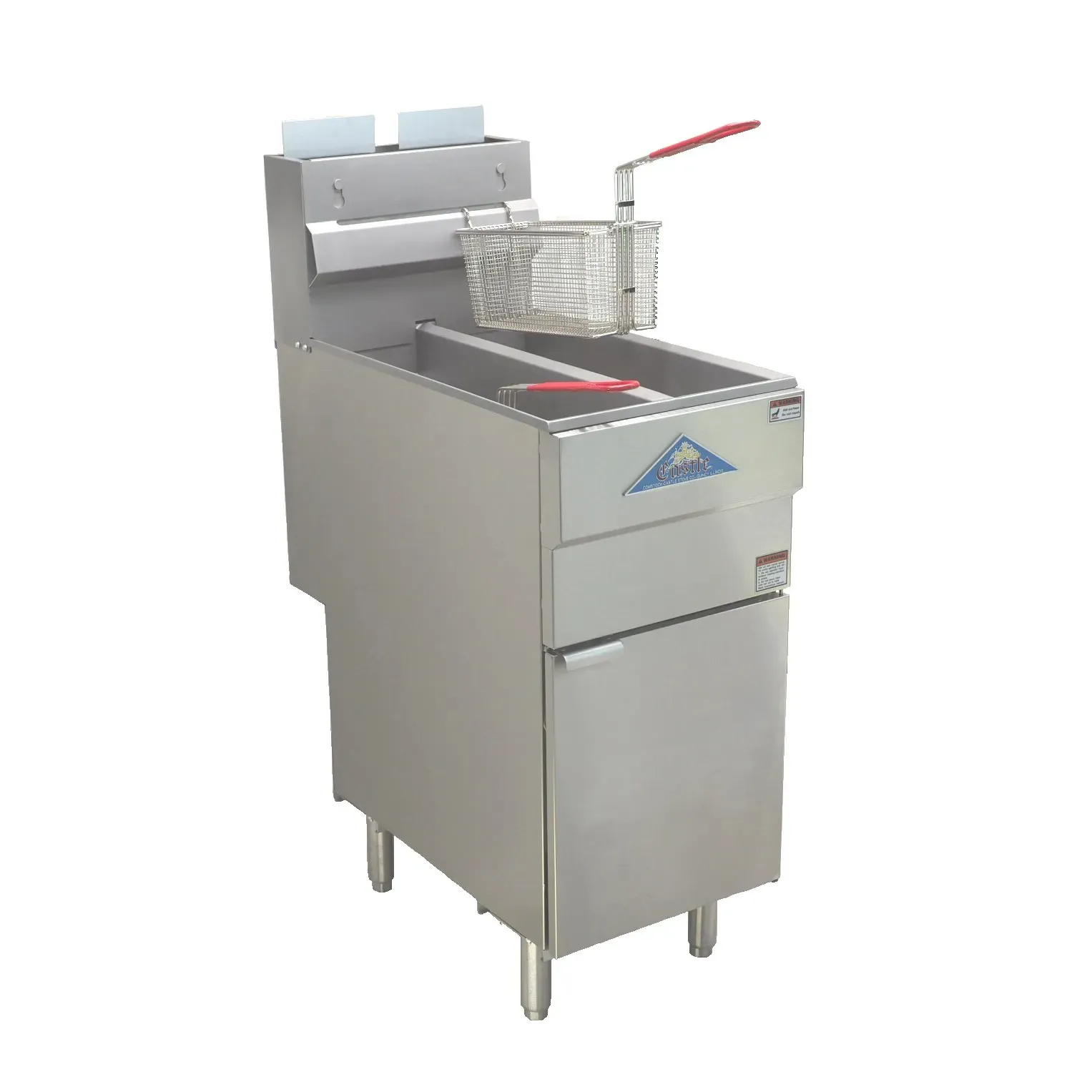 Introducing the Comstock-Castle GF120T-N Fryer, a game-changer in the world of commercial restaurant cooking. This floor model gas fryer is designed to redefine the art of cooking, offering exceptional performance and reliability. With a 15" width and two 25 lb. fat capacity fry tanks, this fryer is perfect for high-volume frying in busy kitchens. The tube type burners, along with the snap action thermostat and standing pilot, ensure precise temperature control and consistent results. The stainless steel separated fry tanks, door, flue, and sides not only provide durability but also make cleaning a breeze. Equipped with two baskets featuring coated handles, this fryer allows for easy and safe frying. The 6" stainless steel legs provide stability and elevate the fryer to a comfortable working height. With a powerful 120,000 BTU output, this fryer delivers exceptional cooking performance. Trust Comstock-Castle to bring innovation and reliability to your commercial kitchen.