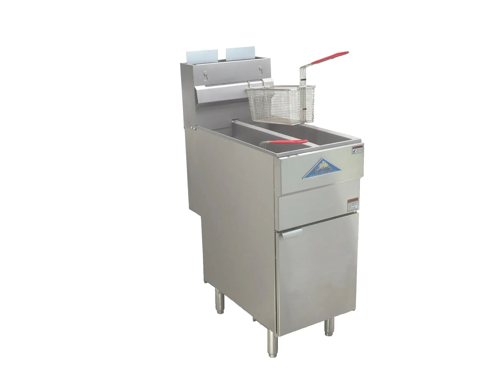Elevate your commercial kitchen's frying capabilities with the Castle Series Fryer, a top-tier gas floor fryer designed for efficiency and performance. This robust floor model operates on propane gas and boasts a sleek 15-inch width, making it a perfect fit for kitchens of all sizes. With a dual 25 lb. fat capacity, this tube-type fryer ensures you can meet high demand without compromising on speed or quality. Its advanced features include dual snap-action thermostats and a standing pilot for precise temperature control, ensuring perfectly fried foods every time. Constructed with a durable stainless steel separated fry tank, door, flue, and sides, this fryer is built to withstand the rigors of a bustling kitchen while maintaining pristine hygiene standards, as evidenced by its cETLus and ETL-Sanitation certifications. The fryer comes equipped with two baskets featuring coated handles for safety and ease of use, supported by sturdy 6-inch stainless steel legs that provide stability. Delivering a powerful 120,000 BTU, the Castle Series Fryer is your dependable partner for achieving consistently delicious results. Optimize your kitchen's productivity and deliver superior fried foods with this high-performance fryer, crafted for culinary excellence.