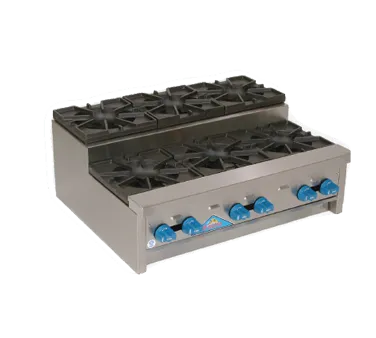 Upgrade your kitchen capabilities with state-of-the-art culinary tools. Introducing the Comstock-Castle SUFHP36 Hotplate, Countertop, Gas. This high-performance hotplate is designed to meet the demands of a busy commercial restaurant kitchen. With a 36" wide x 29" deep frame, it provides ample cooking space for multiple dishes simultaneously. The hotplate features two step-up saut surfaces, measuring 11" and 15", allowing you to cook a variety of dishes with precision. Equipped with six 24,000 BTU cast iron star pattern burners and 12" x 12" cast iron grates, this hotplate delivers exceptional heat distribution and retention. The stainless steel exterior finish ensures durability and easy cleaning. With six manual controls, you have full control over the heat intensity for each burner. With a total output of 144,000 BTU, this hotplate is NSF certified, guaranteeing its quality and safety. Upgrade your kitchen with the Comstock-Castle SUFHP36 Hotplate and elevate your culinary creations to new heights.