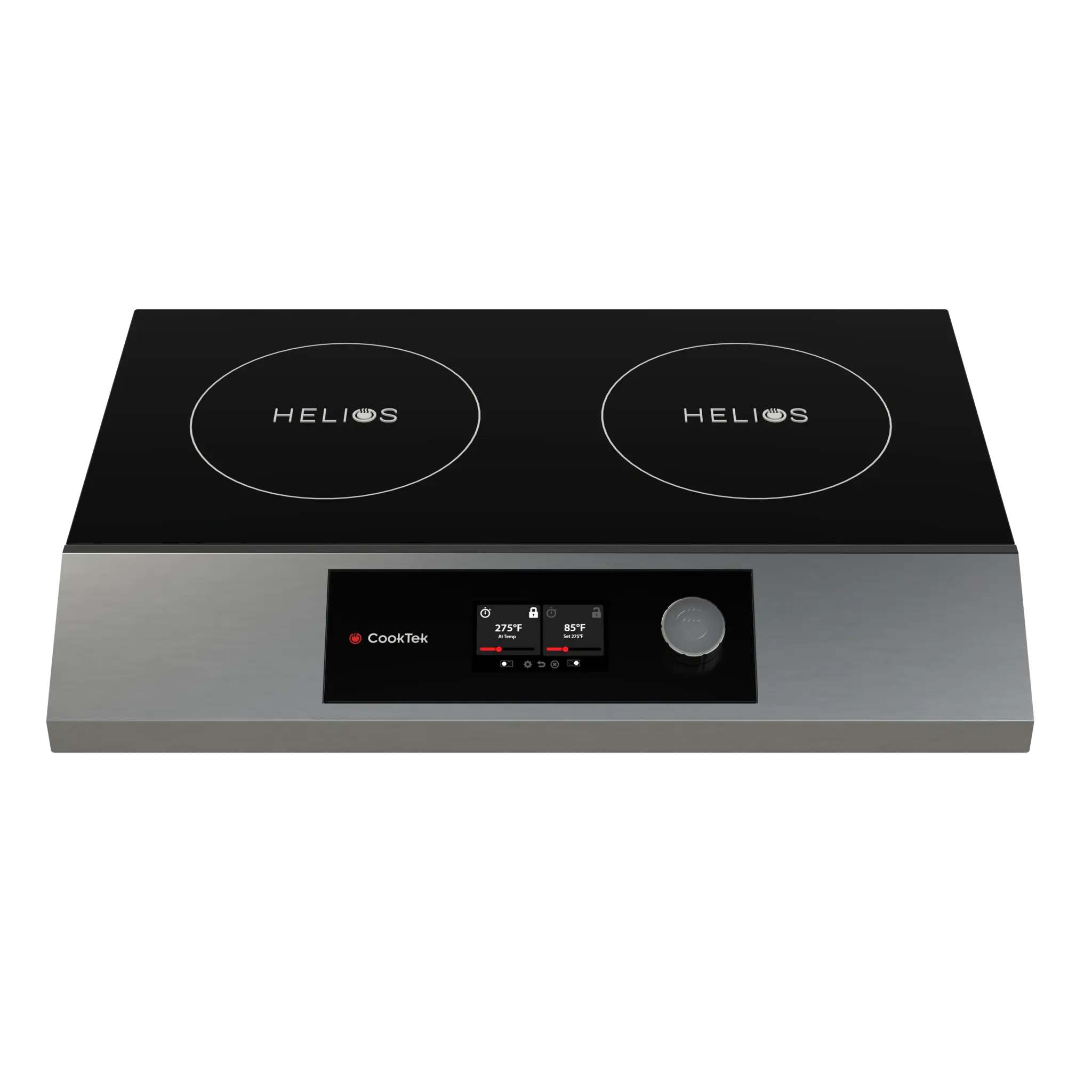 CookTek’s 2500 watt double hob countertop induction cooktop with HELIOS controls offer an efficient, powerful, and user-friendly solution for both commercial and home kitchens, making them a popular choice for chefs and food enthusiasts alike.Even Heating: Induction technology ensures even and consistent heating across the entire pan surface. This results in precise temperature control, which is crucial for achieving perfect dishes.Energy Efficiency: These cooktops are 170% more efficient than gas burners. This means they waste less energy and are more environmentally friendly, making them a sustainable choice for cooking.Precise Temperature Control: The HELIOS controls offer precise power control, allowing chefs to fine-tune the heat for different cooking techniques and recipes. This level of control is challenging to achieve with traditional gas burners.Powerful Performance: Induction cooktops heat up rapidly, significantly reducing cooking time. With three times the power of a gas burner, these cooktops can handle high-heat cooking, such assautéing, searing, and boiling, with ease. The increased power allows for faster cooking and better results.Adaptability: Portable countertop induction cooktops are versatile and can be placed in various locations within a kitchen, while drop-in cooktops seamlessly integrate into kitchen counters. You can configure the hobs side to side or front to back. This adaptability makes them suitable for different kitchen setups and configurations.Easy-to-Clean Surfaces: The cooktop’s flat surface is easy to clean, reducing the time and effort required for post-cooking cleanup. This is particularly important in commercial kitchens, where quick turnover between dishes is essential.Safety Features: Induction technology has no open flames. This is a fundamental safety benefit, as it eliminates the risk of gas leaks, flare-ups, or accidental fires associated with traditional gas burners. Induction cooktops generate heat through electromagnetic fields, which only heat the cookware placed on the surface. The cooktop itself remains cool to the touch, minimizing the risk of burns or accidental contact with hot surfaces.These safety features make induction cooktops a safer choice for both professional chefs and home cooks, reducing the likelihood of kitchen accidents and making them a preferred option in many kitchens.