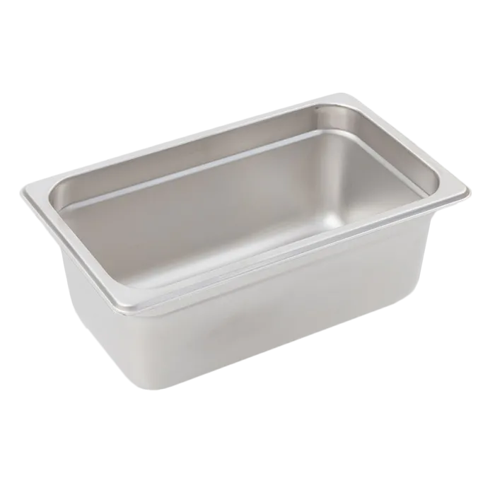 Innovative solutions for culinary mastery. Introducing the Crestware 4144 Steam Table Pan, Stainless Steel. Designed for commercial restaurant use, this steam table pan is a must-have for any professional kitchen. Made from 18/8 stainless steel with a 24-gauge thickness, it ensures durability and long-lasting performance. The 1/4 size and 4" depth provide ample space for holding and serving a variety of dishes, while the Saf-T-Rim and flat edge design offer easy handling and prevent spills. The jam reduction shoulder allows for seamless stacking, saving valuable storage space. NSF certified for food safety, this steam table pan meets the highest industry standards. Whether you're serving hot entrees, sides, or desserts, the Crestware 4144 Steam Table Pan is the ideal choice for efficient and reliable food service.