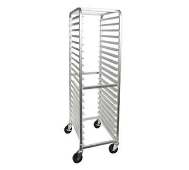 Equip your kitchen for superior culinary mastery with the Crestware ABPR20 Pan Rack. This heavy-duty bun pan rack is designed to meet the demands of a commercial restaurant setting. With 20 tiers and dimensions of 26" x 20" x 69"H, it provides ample space for storing and transporting pans. The reinforced uprights and heavy-duty casters ensure durability and ease of movement. Made of aluminum, this rack is lightweight yet sturdy. It is shipped KD (knocked down) for easy assembly. Whether you're a busy bakery or a bustling restaurant, this pan rack is a must-have for efficient organization and storage. Invest in this high-quality rack and streamline your kitchen operations today.