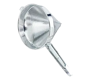 Transform your kitchen with top-of-the-line cooking gear. Introducing the Crestware CCS10F Strainer, China Cap / Chinois / Bouillon. This fine 10" cap strainer is a must-have tool for any commercial restaurant. Made from high-quality 18/8 stainless steel, it is built to withstand the demands of a busy kitchen. Its fine mesh design ensures that even the smallest particles are strained out, resulting in smooth and velvety sauces, soups, and stocks. The Crestware CCS10F is not only durable but also easy to clean, making it a practical choice for busy chefs. Whether you're straining vegetables, fruits, or pasta, this strainer will deliver consistent and reliable results every time. Upgrade your kitchen equipment with the Crestware CCS10F and experience the difference it makes in your culinary creations.