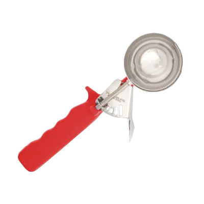 Tools that define culinary excellence. Introducing the Crestware DD24 Disher, Standard Round Bowl. This deluxe disher is a must-have for any commercial restaurant. With its #24 size and thumb lever, it allows for precise portion control, ensuring consistent serving sizes every time. Made from high-quality 18/8 stainless steel, this disher is built to withstand the demands of a busy kitchen. The color-coded ergonomic handle in vibrant red not only adds a pop of color but also provides a comfortable grip, reducing hand fatigue during extended use. NSF certified, this disher meets the highest standards of safety and sanitation. Elevate your culinary creations with the Crestware DD24 Disher, the perfect tool for achieving perfection in every dish.