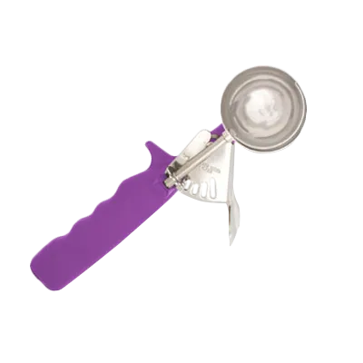 Crafting success in every culinary creation, Crestware presents the DD40 Disher, Standard Round Bowl. This deluxe disher is a must-have tool for any commercial restaurant. With its 18/8 stainless steel construction, this disher is built to withstand the demands of a busy kitchen. The color-coded ergonomic handle in purple ensures easy identification and comfortable use, reducing strain on the chef's hand. The thumb lever mechanism allows for effortless portioning, making it ideal for scooping and serving consistent portions of ice cream, mashed potatoes, or cookie dough. NSF certified, this disher meets the highest standards of safety and sanitation. Whether you're running a bustling restaurant or a busy catering service, the Crestware DD40 Disher is the perfect tool to enhance efficiency and precision in your culinary endeavors.
