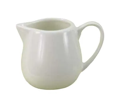 Seamless tools for creating exceptional culinary delights. Introducing the Crestware EL72 Creamer/Pitcher, China. This elegant creamer is a must-have for any commercial restaurant. With its chip-resistant and glazed porcelain construction, it is designed to withstand the rigors of a busy kitchen. The 7 oz. capacity and convenient handle make it perfect for serving cream or milk with coffee or tea. The pearl white Elegante finish adds a touch of sophistication to any table setting. Whether you're running a bustling cafe or a fine dining establishment, the Crestware EL72 Creamer/Pitcher is the ideal choice for adding a touch of elegance to your beverage service. Elevate your restaurant's presentation with this exquisite creamer.