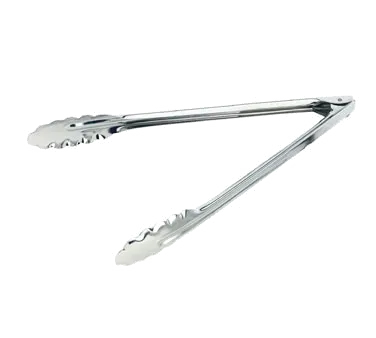 Equip your kitchen for excellence in every dish with Crestware HDT12 Utility Tongs. These heavy-duty tongs are a must-have for any commercial restaurant. Made with .8mm stainless steel, they are built to withstand the demands of a busy kitchen. The hinged design and flat bi-metal spring ensure a secure grip on food, making it easy to flip, turn, and serve with precision. With a length of 12 inches, these tongs provide the perfect reach for handling hot items on the grill or stove. Whether you're grilling steaks, tossing salads, or plating desserts, Crestware HDT12 Utility Tongs are the reliable and versatile tool that will elevate your culinary creations. Trust Crestware for quality and durability in every bite.