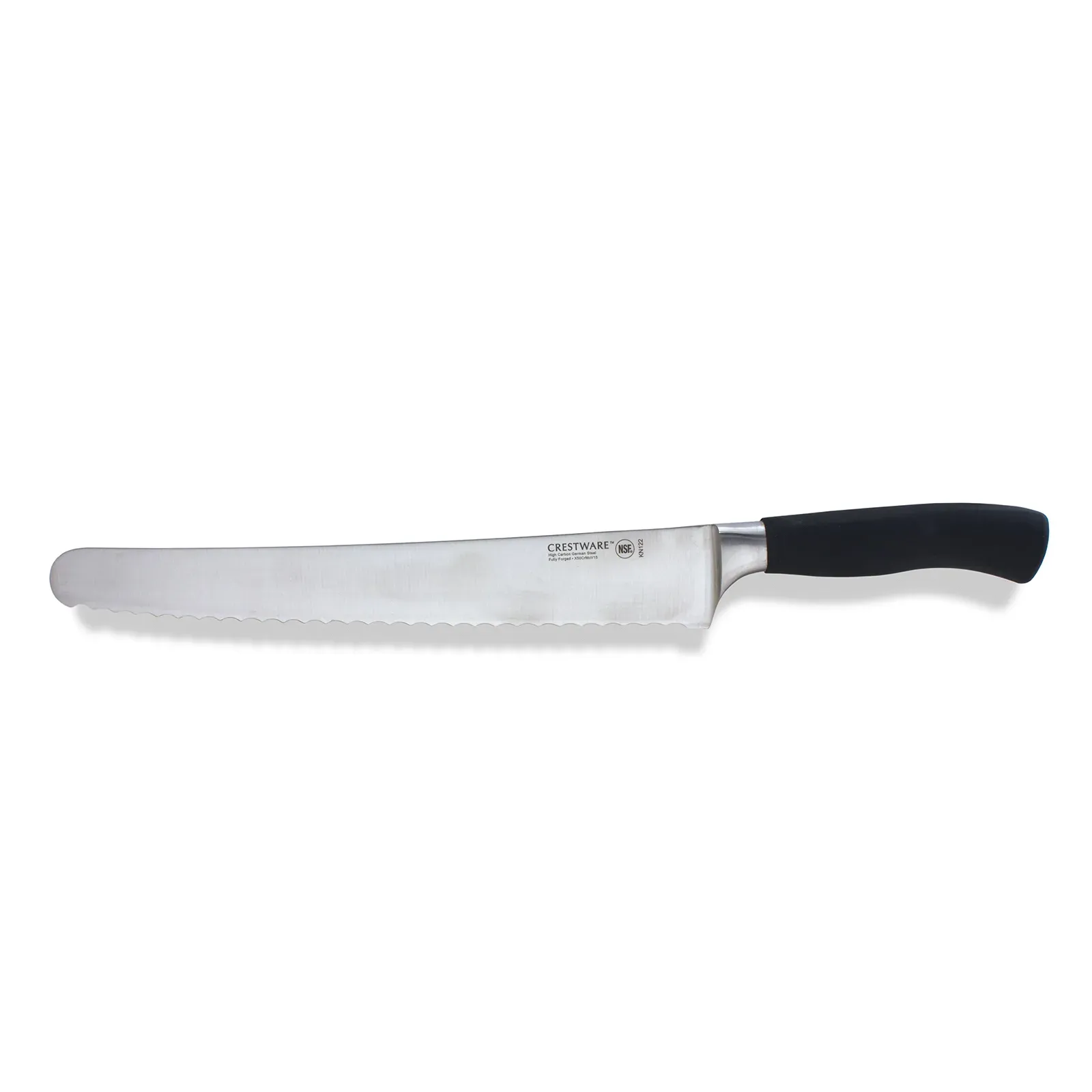 Modernize your kitchen for enhanced culinary experiences with the Crestware KN122 Bread/Sandwich Knife. This elite pro wide knife is designed to meet the demands of commercial restaurant use. Crafted with a forged, high carbon German molybdenum vanadium steel blade, this knife ensures exceptional durability and precision cutting. The ergonomic soft grip santoprene handle provides a comfortable and secure grip, reducing fatigue during long hours of use. With its NSF certification, you can trust that this knife meets the highest standards of safety and sanitation. Whether you're slicing through crusty bread or creating mouthwatering sandwiches, the Crestware KN122 Bread/Sandwich Knife is the perfect tool to elevate your culinary creations. Upgrade your kitchen arsenal today and experience the difference in performance and quality.