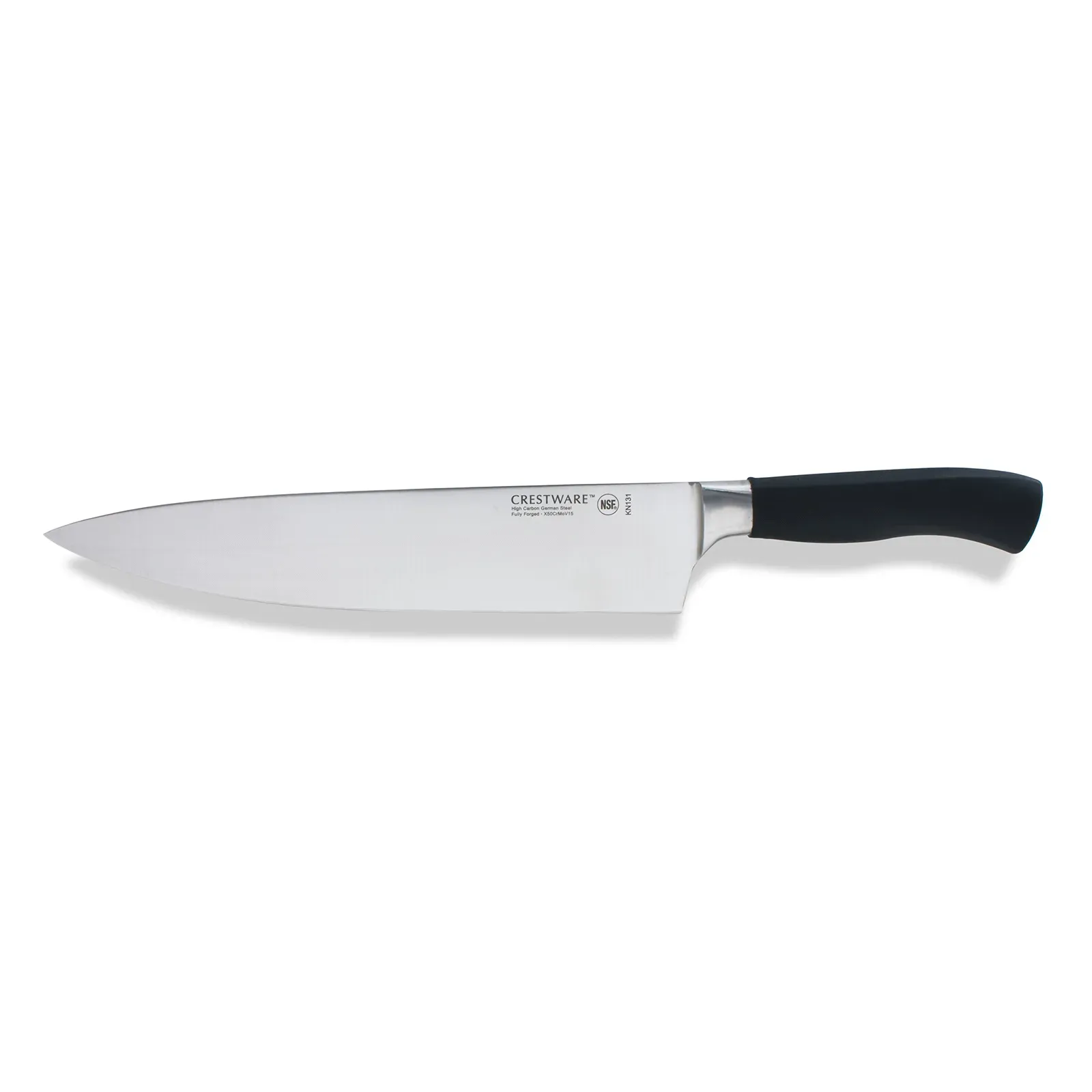 Invest in quality for a seamless cooking process with the Crestware KN131 Chef Knife. This elite pro cooks knife is designed to meet the demands of a commercial restaurant kitchen. The 10" forged blade is made from high carbon German molybdenum vanadium steel, ensuring exceptional durability and sharpness. The ergonomic soft grip santoprene handle provides a comfortable and secure grip, reducing fatigue during long hours of use. NSF certified, this knife meets the highest standards of safety and sanitation. Whether you're slicing, dicing, or chopping, the Crestware KN131 Chef Knife delivers precision and efficiency, making it an essential tool for any commercial chef.