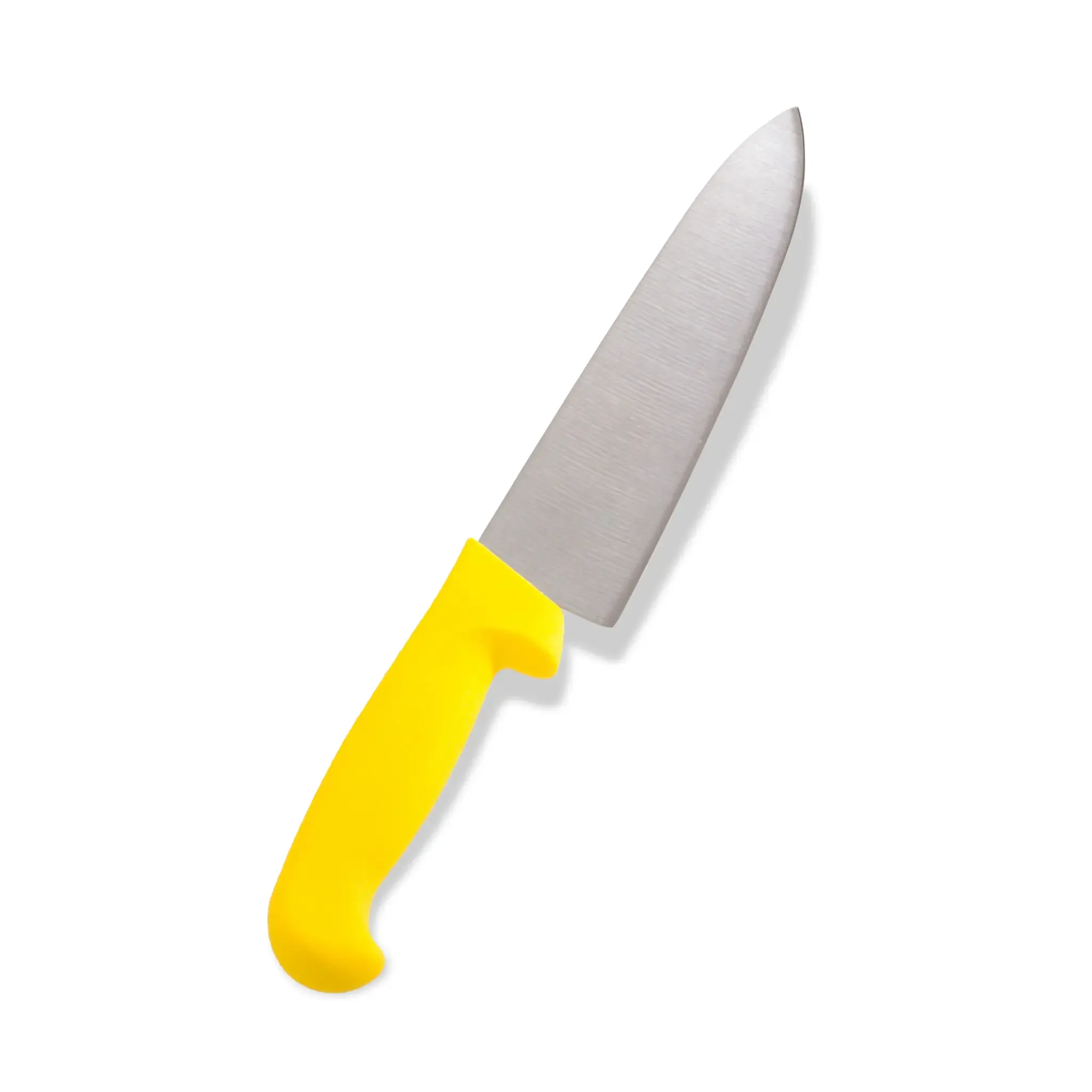 Seamless cooking equipment for exceptional results. Introducing the Crestware KN31Y Chef Knife, a must-have tool for any commercial restaurant. This high-quality knife is designed to meet the demands of a busy kitchen, ensuring precision and efficiency in every cut. The 10" high carbon German steel blade provides superior sharpness and durability, allowing you to effortlessly slice through meats, vegetables, and more. The polypropylene handle offers a comfortable grip, reducing fatigue during extended use. With its vibrant yellow color, this knife is easy to spot and helps prevent cross-contamination in a fast-paced kitchen environment. NSF certified for food safety, this knife is a reliable choice for professional chefs. Upgrade your culinary arsenal with the Crestware KN31Y Chef Knife and experience the difference it makes in your restaurant's efficiency and productivity.
