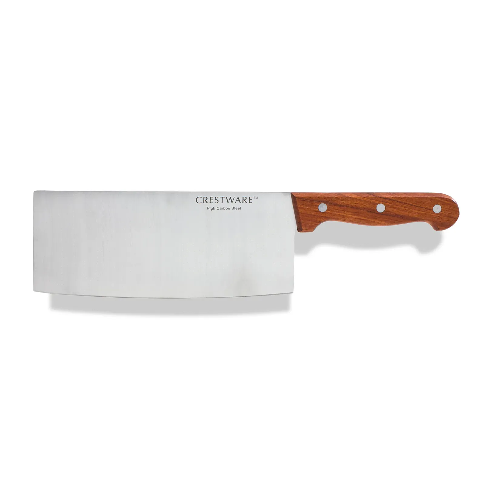 Craft culinary wonders with professional-grade gear. The Crestware KN320 Knife Cleaver is a must-have tool for any commercial restaurant. With its 8" blade and wood handle, this cleaver is designed to handle the toughest cutting tasks with ease. The Crestware KN320 is made by Crestware, a trusted vendor known for their high-quality kitchen products. Whether you're chopping vegetables, slicing meat, or breaking down poultry, this cleaver will deliver precise and efficient results every time. Its durable construction ensures long-lasting performance, even in the busiest of kitchens. Upgrade your culinary arsenal with the Crestware KN320 Knife Cleaver and experience the difference it makes in your restaurant's efficiency and productivity.