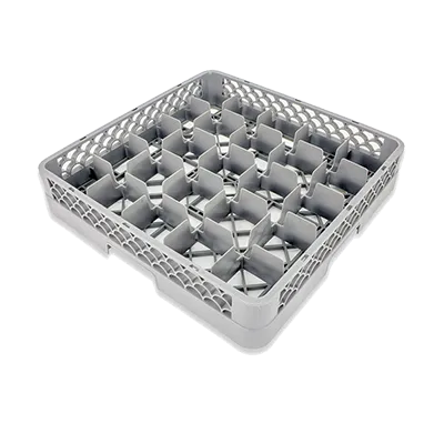 Seamless cooking equipment for exceptional results. Introducing the Crestware RBC25 Dishwasher Rack, Glass Compartment. Designed for commercial restaurant use, this dishwasher rack is a game-changer in the kitchen. With 25 compartments and full-height dividers, it provides ample space to safely hold and wash glassware. The handgrips make it easy to transport, while the chemical-resistant polymers ensure durability and longevity. The gray textured surface adds a touch of sophistication to any restaurant setting. Whether you're running a bustling bar or an upscale dining establishment, the Crestware RBC25 Dishwasher Rack is a must-have. Say goodbye to broken glassware and hello to efficiency and convenience. Upgrade your restaurant's dishwashing process with this top-of-the-line dishwasher rack.