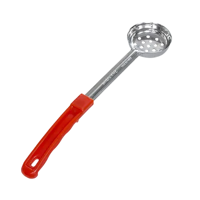 Create culinary wonders with state-of-the-art equipment. Introducing the Crestware SPO2P Spoon, Portion Control. Designed for commercial restaurant use, this perforated spoon is a must-have tool for precise portioning. Made from high-quality 18/8 stainless steel, it ensures durability and longevity, even with heavy use. The 2 oz. capacity allows for accurate measurement, making it ideal for portioning sauces, soups, and other culinary creations. The color-coded handle in vibrant red adds a touch of organization to your kitchen, preventing cross-contamination and ensuring food safety. Whether you're a professional chef or a restaurant owner, the Crestware SPO2P Spoon, Portion Control is the perfect addition to your kitchen arsenal. Elevate your culinary creations and streamline your portioning process with this reliable and efficient tool.