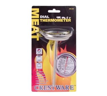 Innovative solutions for mastering the culinary arts start with the Crestware TRMDM200 Meat Thermometer. Designed specifically for commercial restaurant use, this dial-type thermometer is a must-have tool for any professional chef. With a temperature range of 120 to 200 degrees Fahrenheit, it ensures accurate readings for perfectly cooked meats every time. The stem allows for easy insertion into thick cuts of meat, while the dial provides clear and precise temperature readings. NSF certified, this thermometer meets the highest standards of safety and sanitation in the industry. Whether you're grilling steaks, roasting poultry, or smoking ribs, the Crestware TRMDM200 Meat Thermometer is the reliable and accurate tool you need to elevate your culinary creations to the next level. Trust Crestware for quality and performance in every dish.