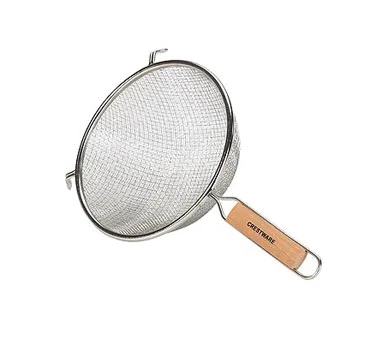 Introducing the Crestware WHSDM8 Mesh Strainer, a must-have tool for any commercial restaurant kitchen. This high-quality strainer is designed to ensure consistency in your culinary creations. With its medium double mesh and double coated tin construction, it effectively strains ingredients while preventing unwanted particles from passing through. The sturdy wood handle provides a comfortable grip, making it easy to strain large quantities of food without straining your hand. Whether you're straining pasta, rinsing vegetables, or sifting dry ingredients, this Crestware Mesh Strainer is up to the task. Its durable construction and reliable performance make it a valuable addition to any professional kitchen. Elevate your cooking game and streamline your food preparation process with this essential tool. Trust Crestware for all your high-quality cooking gear needs.