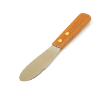 Seamless tools for crafting exceptional dishes. Introducing the Crestware WHSS6 Sandwich Spreader, a must-have for any commercial restaurant. This stainless steel spreader is designed to make spreading condiments and toppings a breeze. With a 3-3/4" blade and a 6" overall length, it is the perfect size for efficiently spreading mayo, mustard, or any other delicious ingredient onto sandwiches or burgers. The round end and serrated edge ensure even distribution and a professional finish. The wooden handle provides a comfortable grip, allowing for precise control and reducing hand fatigue during long shifts. Whether you're running a deli, cafe, or restaurant, the Crestware WHSS6 Sandwich Spreader is the ideal tool to elevate your culinary creations and impress your customers.