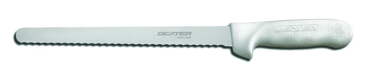 Set standards with the latest equipment. Introducing the Dexter Russell, 13403, Slicer. This 10" narrow scalloped roast slicer is a must-have for any commercial restaurant. With its razor-sharp blade and ergonomic handle, this slicer effortlessly cuts through meats, ensuring precise and consistent slices every time. The narrow design allows for easy maneuverability, making it ideal for slicing roasts, hams, and other large cuts of meat. The scalloped edge helps prevent sticking, reducing friction and ensuring smooth, clean cuts. Crafted by Dexter Russell, a trusted name in the industry, this slicer is built to withstand the demands of a commercial kitchen. Upgrade your restaurant's slicing capabilities with the Dexter Russell, 13403, Slicer and experience the difference in efficiency and quality.